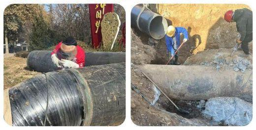 截至下午4:00,經十東路DN900輸水管線遷改工程順利完成合口;5:00玖悅府東側道路輸水管線遷改合口順利完成。