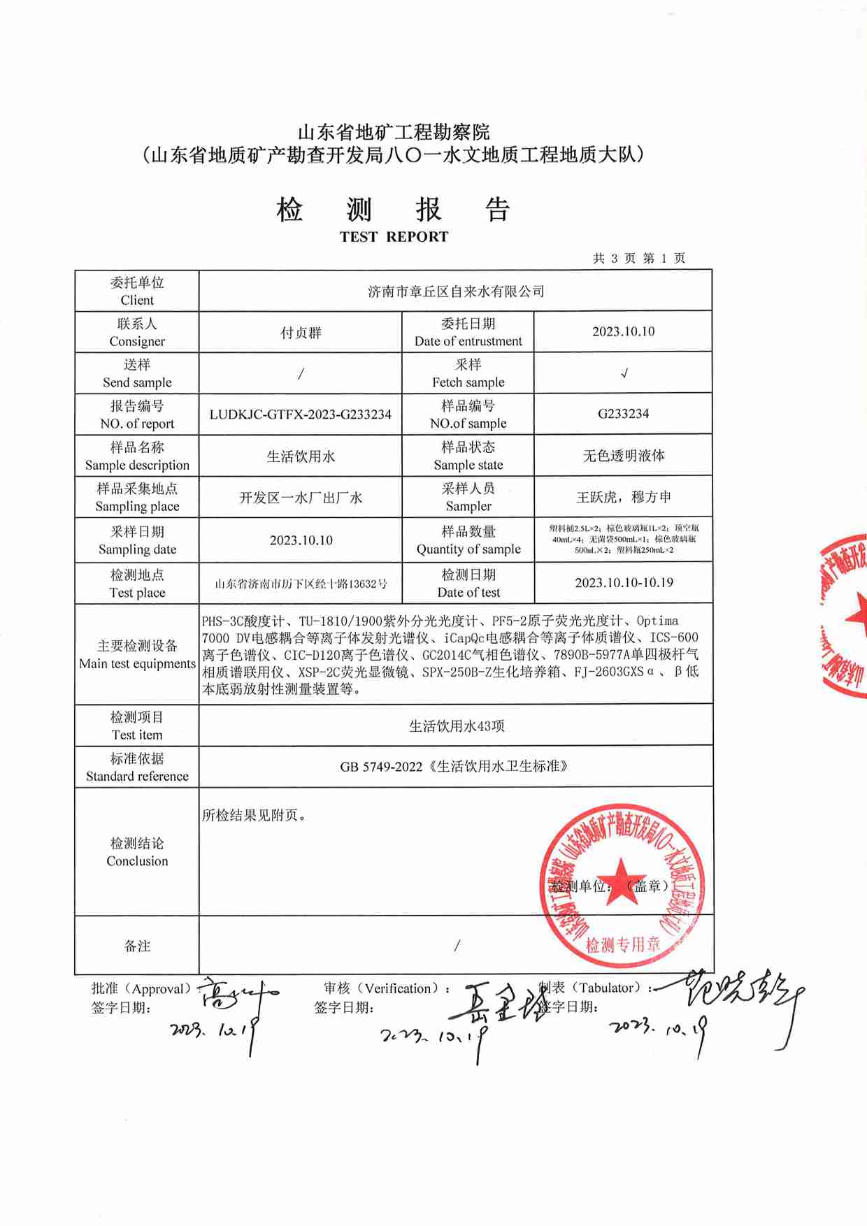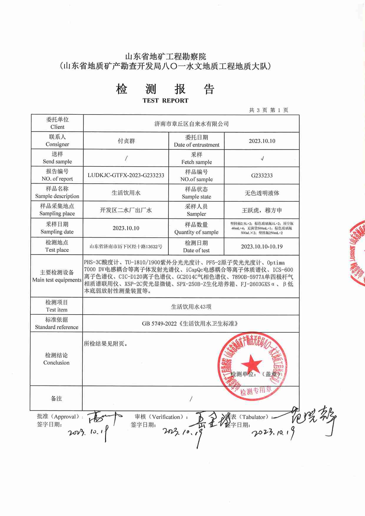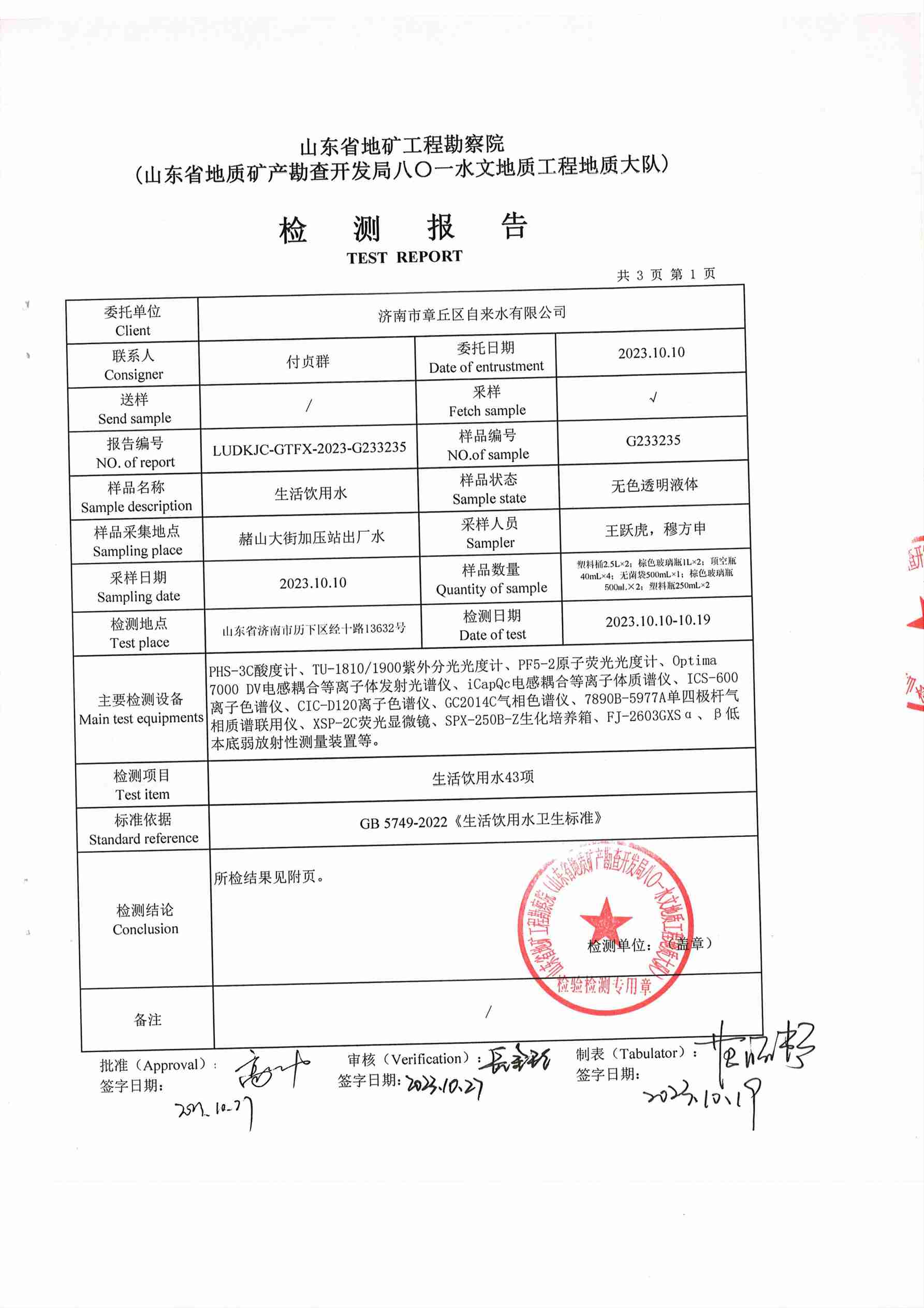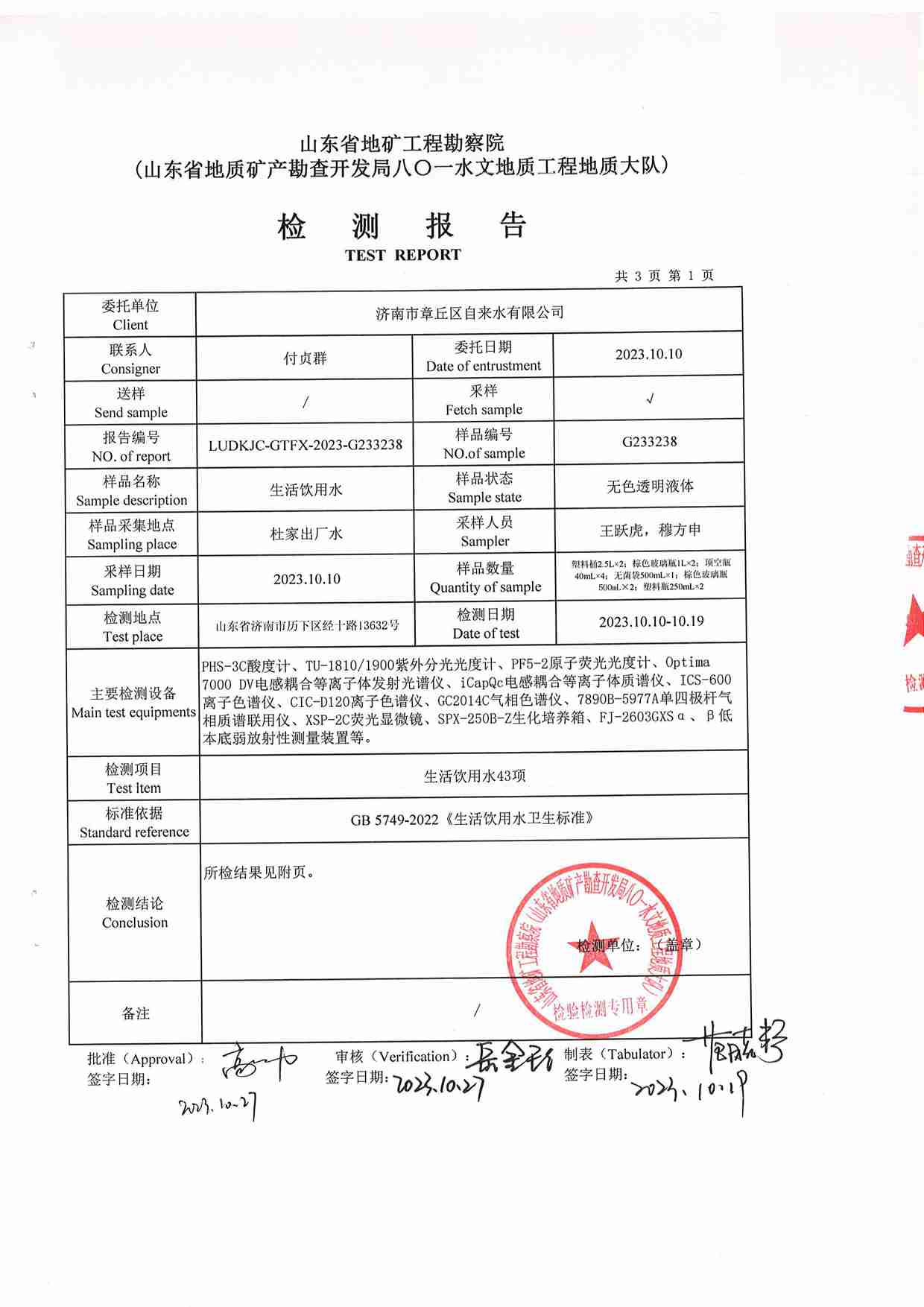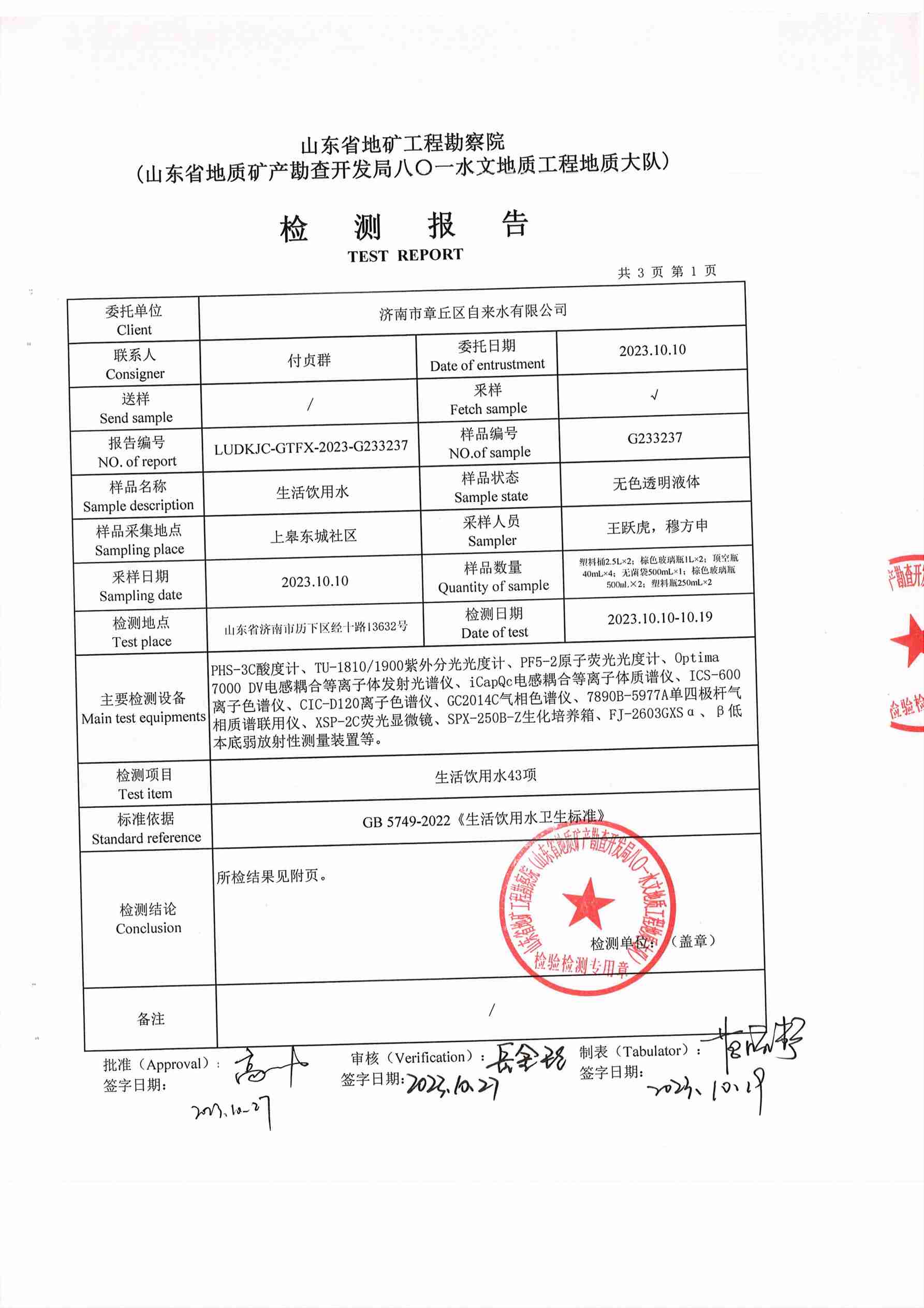 2023年10月水質報告