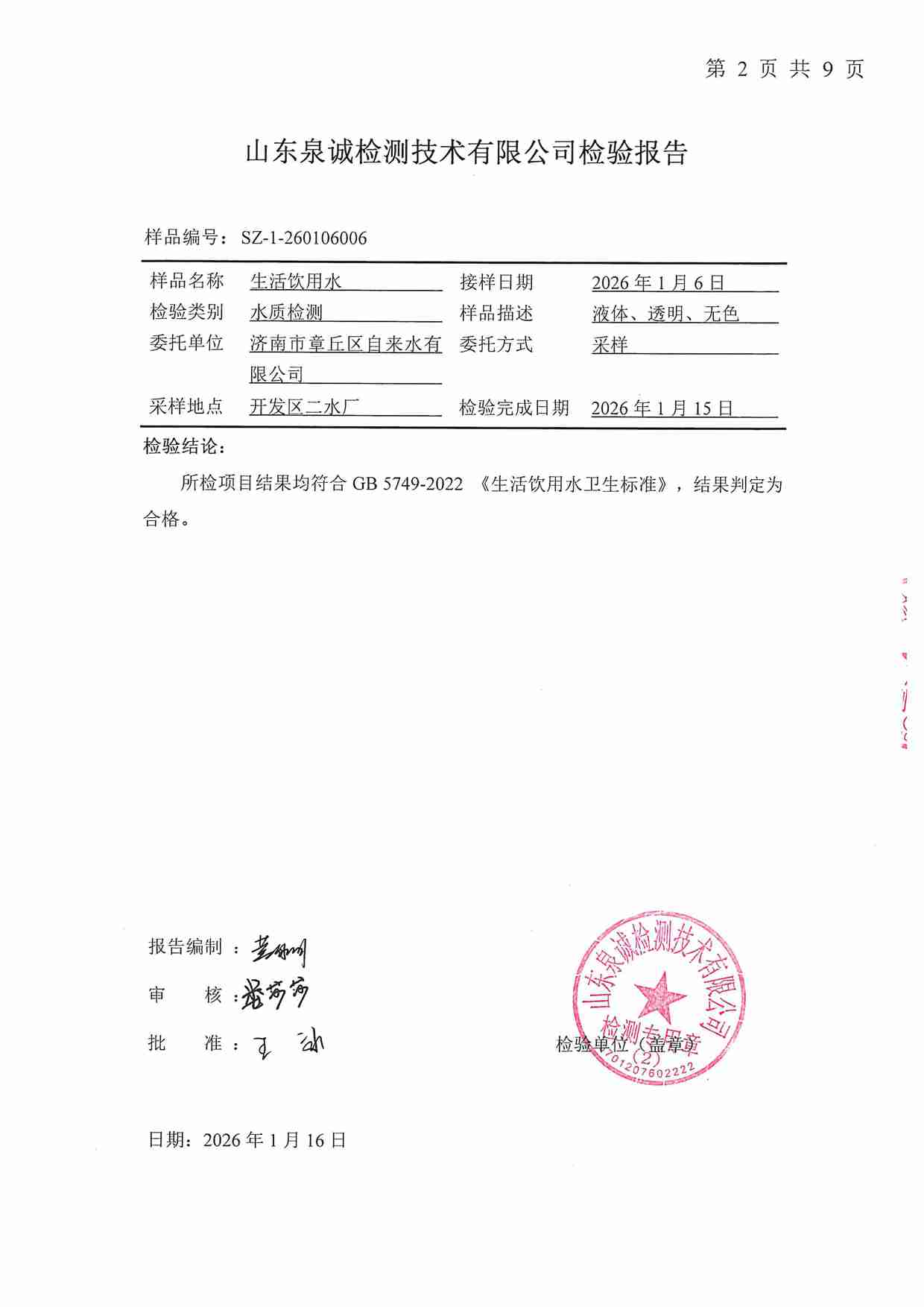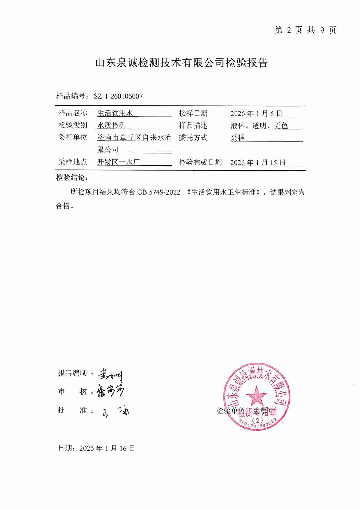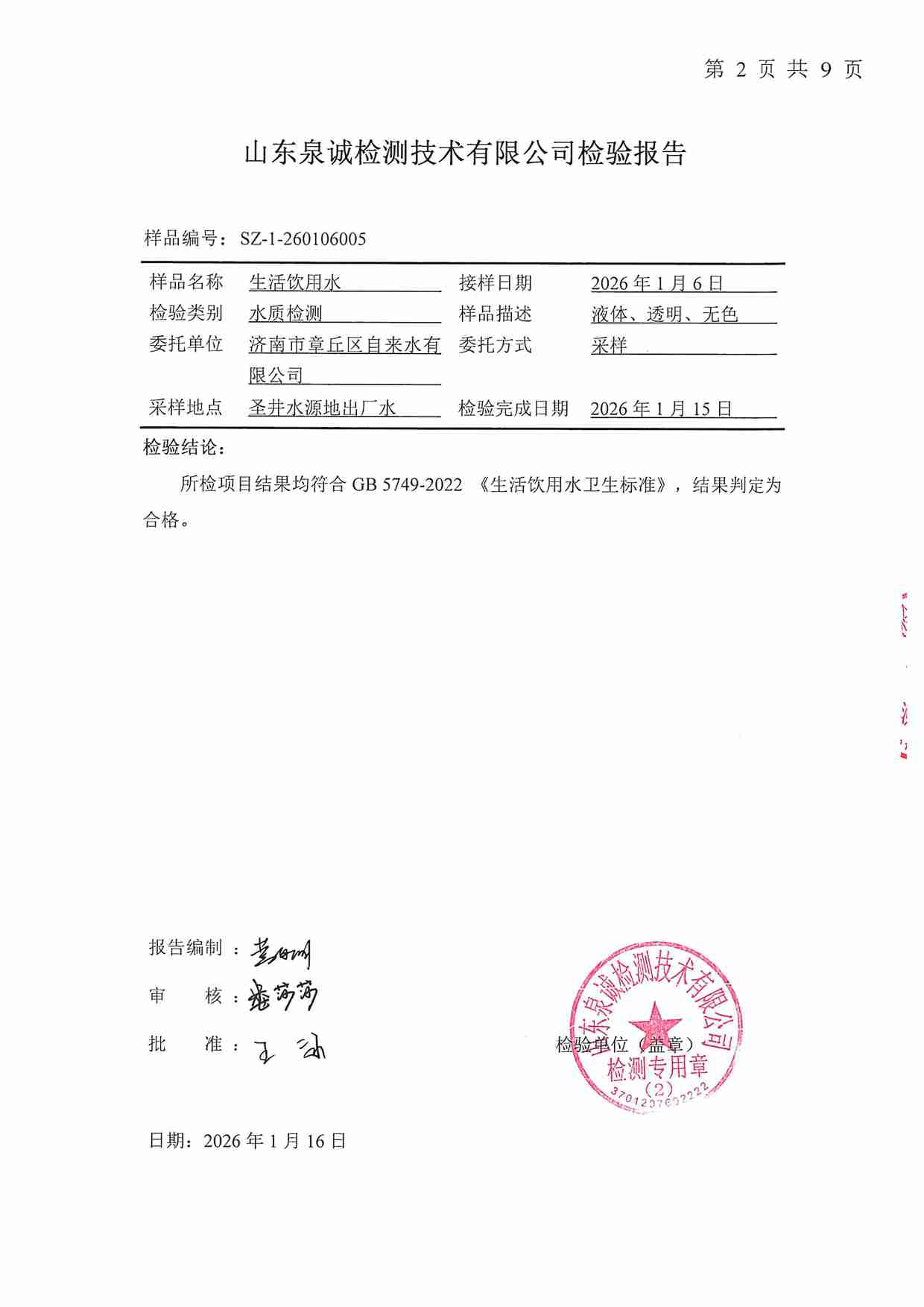 2026年01月水質報告
