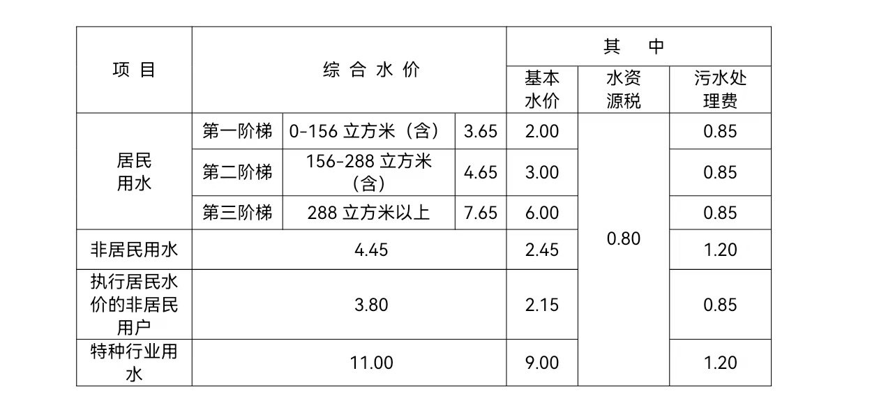 根據《關于調整城市公共供水基本水價的通知》(章價發【2019】1號)文件規定,我區城市公共供水范圍內自來水收費標準見下表: